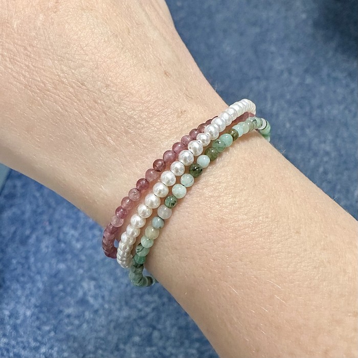 Koupí této sady získáváte tři samostatné náramky – z pravých perel, turmalínu a smaragdu, doplněné stříbrnými uzávěry. Oslavte s námi naše narozeniny a dopřejte sobě nebo svým blízkým jedinečný dárek, který se neokouká.